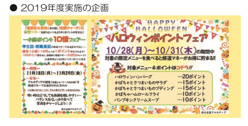 ポイント企画をはじめ、修大生協で実施されるイベント企画等の告知は、修大生協HPやSNS等で発信を行っております。