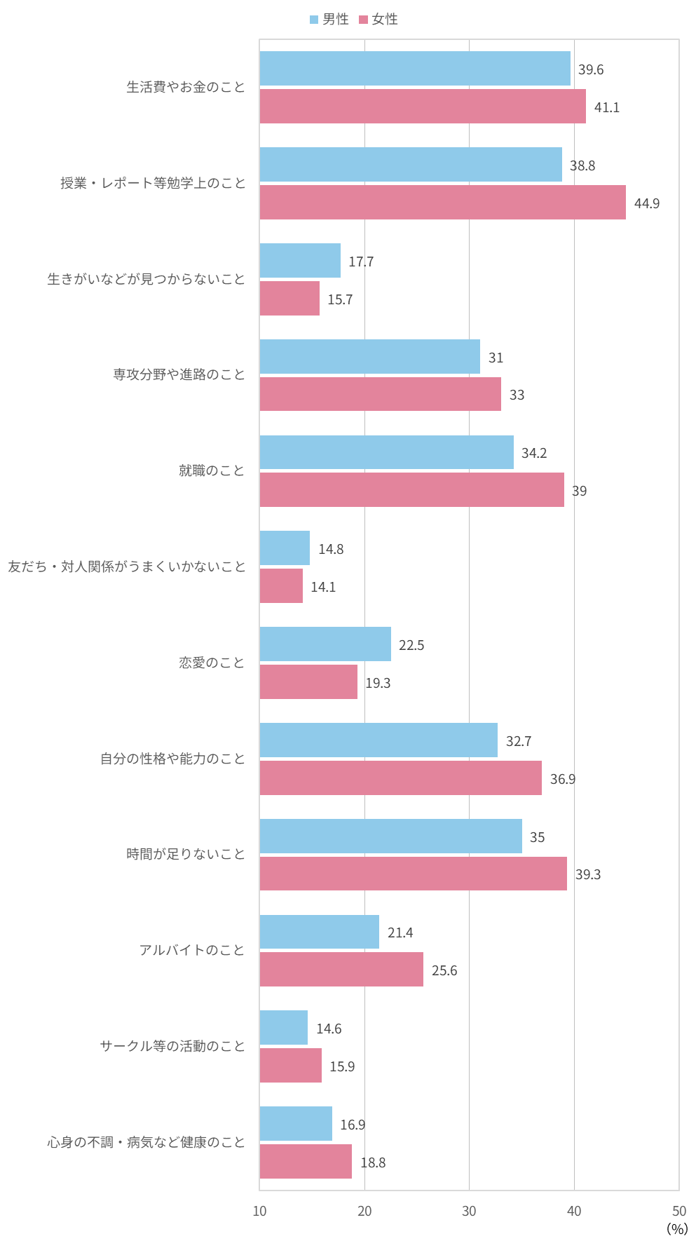 特に進路や人間関係による心配事に大学生が悩まされていることが多いようです。