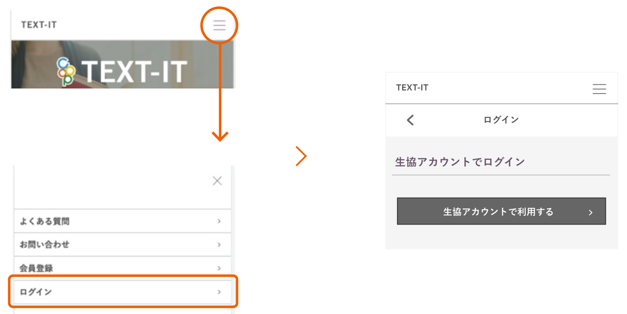 TEXT-ITには、組合員連携済の⽣協アカウントでログインしましょう!
