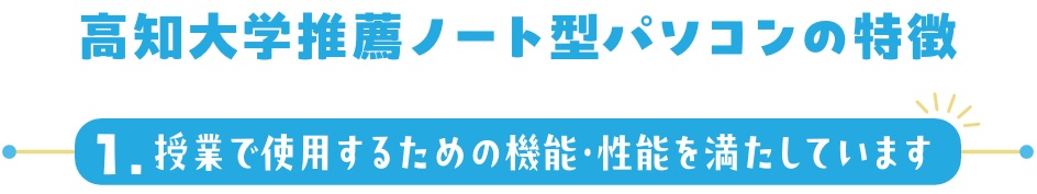 高知大学推薦ノート型パソコンは、高知大学の教職員が選定しています。そのため、授業で使用するために大学が設定した要件(機能・性能)を大幅にクリアしています。