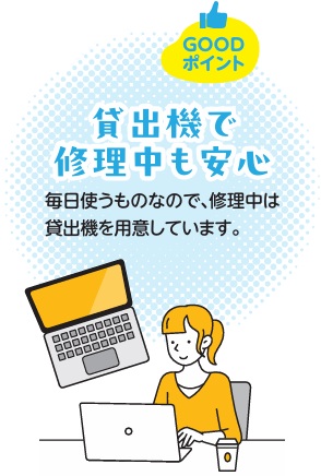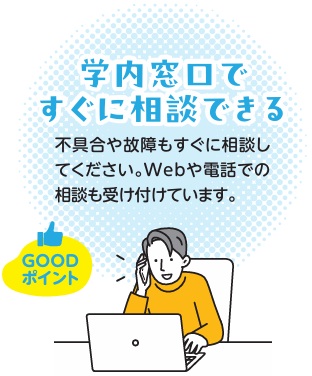 なんといっても一番の特徴は4年間保証です。授業直前にパソコンが動かなくなってとても困ったのですが、学内の窓口に行ったらすぐに貸出機を貸してくれたので本当に助かりました。