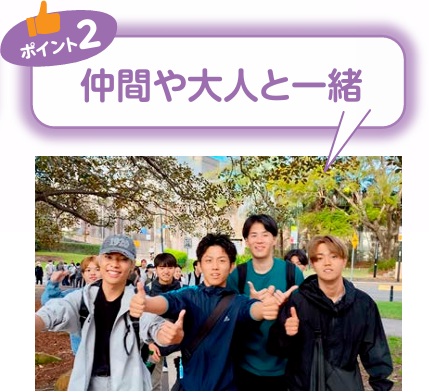 このツアーは一人で参加するツアーではありません。高知大生の仲間と一緒に行動します。何か困ったことがあっても、同行する講師や生協職員がサポートします。