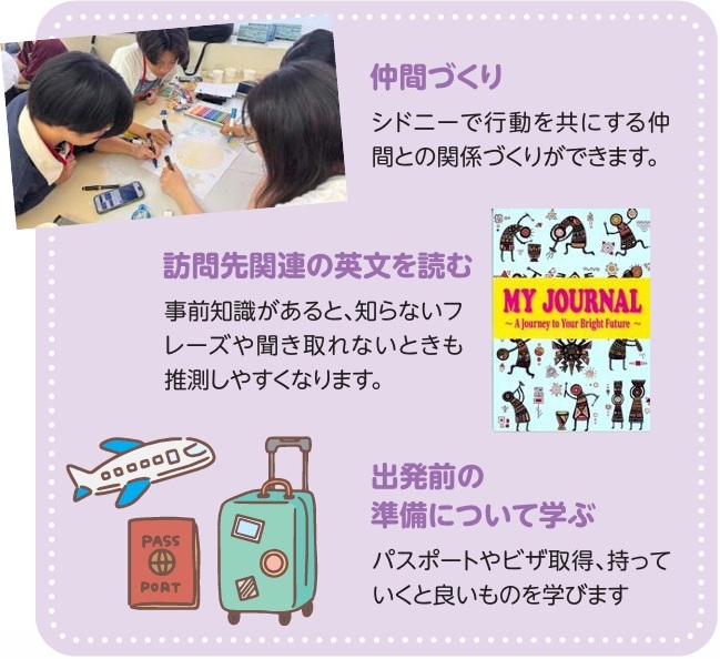 日本と海外のコミュニケーションの取り方の違いを学んだり、英文でシドニーの歴史を学んだりと事前学習が充実!