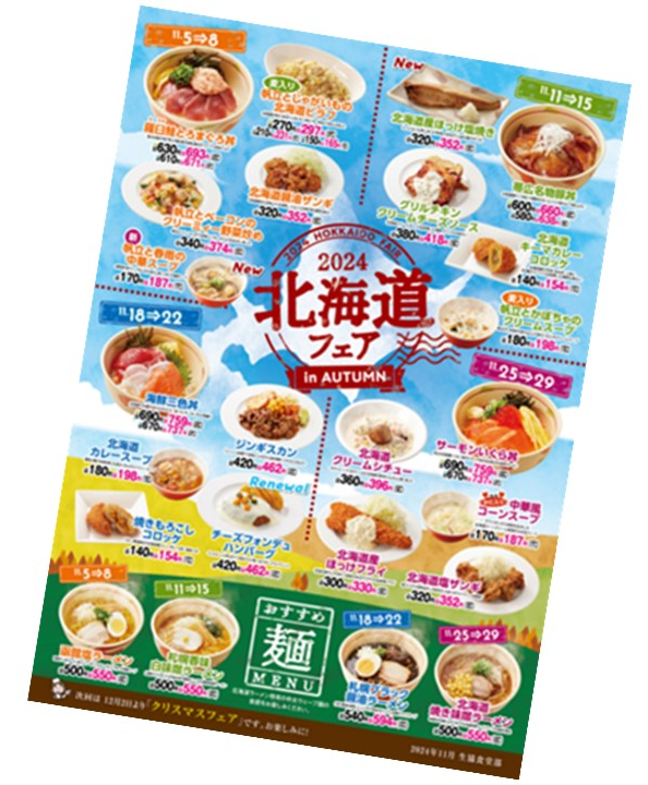 皆さんに楽しく生協食堂を利用していただけるように、旬の食材を生かしたフェアやご当地フェアをおこなっています。