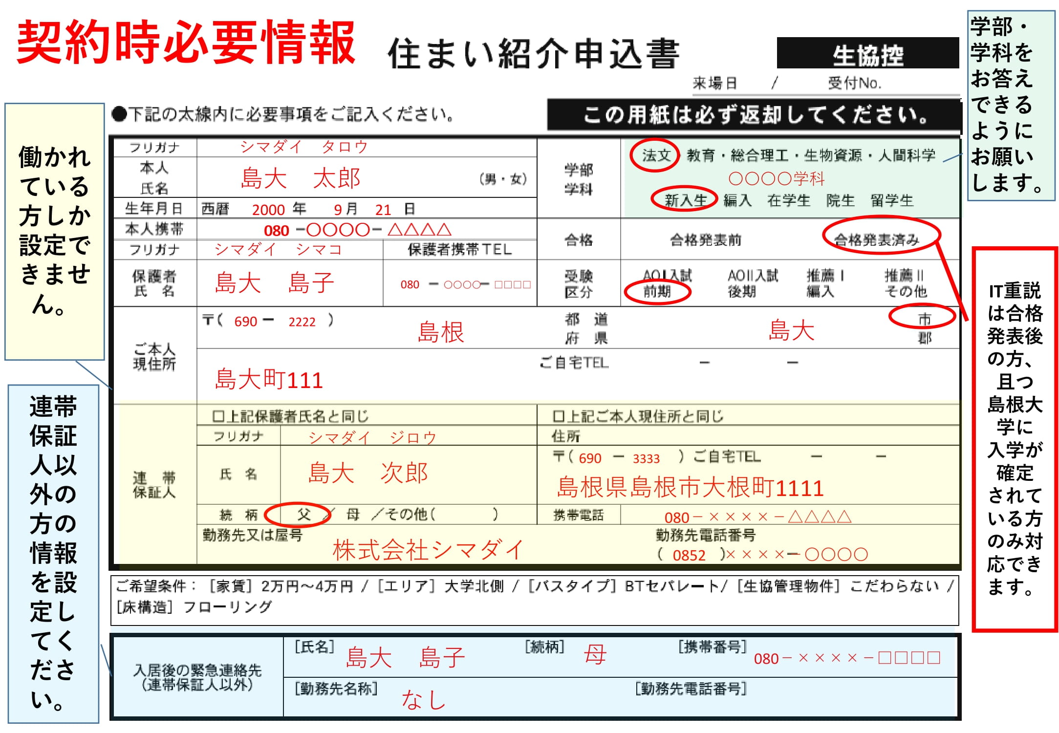 契約したい建物の空室について、島根大学生協に問い合わせます。担当職員から説明があります。その説明を聞いた後にIT重説を希望されるか返答します。