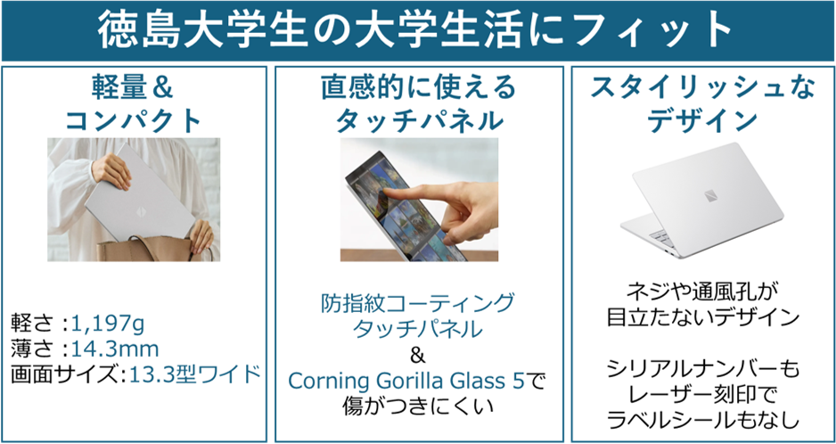※Surface Laptop 第7世代は一部の学科・コースでは徳島大学が指定する推奨スペックの要件を満たしておりませんので、ご注意ください。