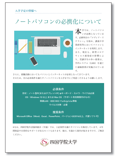 入学までに自分専用のノートパソコンを準備して、オンライン授業にも備えましょう!